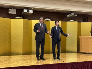 最後に、10/20に開催された渋谷たけし市会議員の横浜市会議長就任祝賀会についてお話します。このブログでも過去に何回か触れたと思いますが、渋谷市議は私が高校1年生の頃に私の父の運転手として政治のキャリアをスタートしました。当時まだ大学生だったと思います。高校生と大学生ですから、当時は『アニキ』のような存在であり、確か最初に関内の街に飲みに連れて行ってくれたのも渋谷さんだったと記憶しています。あ、もちろん二十歳を過ぎてからの話ですが…(汗)。その後、渋谷さんは父の秘書となり、父が政界を退いてからは菅義偉衆議院議員の公設第一秘書として活躍しました。そして現在は横浜市会議員の5期目です。気が付けばそれから50年近い歳月が経過したことになります。そりゃ、お互いジジイになりますね。しかし、当時からの関係性は全く変化なく、今でも仲良くしています。自分が県会議員に出馬する気持ちを固めた要因は渋谷さんの熱い説得(半分は脅迫?だった気もしますが…)が大きかったと思いますし、議員になってからもいろいろ助けていただきました。面と向かって言うのは嫌ですが、感謝しています。そんな渋谷さんがついに市会議長!菅元総理も「感無量です」とおっしゃっていましたが、自分だって負けないくらい感無量です。デカくて、優しくて、頭が良くて、超テキトーな渋谷さん。本当におめでとうございます。これからもよろしくお願いいたします。