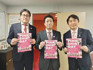 選挙が終われば、2/26に登壇予定の本会議一般質問に向け全集中。自分は毎年2月定例会が一般質問の担当なのですが、前年度は9月に代表質問を担当したため一般質問は一回休みとなり、今回は2年振りの一般質問となりました。これまでは6~7項目の質問を行っていたのですが、今回は地元ネタや陳情ネタなど、ちょっと欲張って8項目の質問を行いました。こちらの内容は、また改めてご報告させていただく予定です。そんな中、2/25は「ピンクシャツDAY」。今年も『いじめ撲滅』を目指し、全ての議員がピンクの物を身に着け本会議に臨みました。毎年「ピンク似合いますね」と言われ、喜んでいいのかわからずリアクションに困っています…。