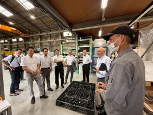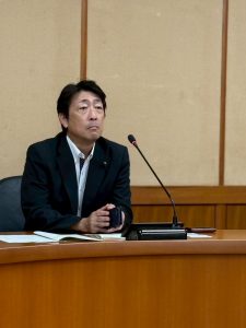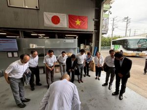 (株)熊井は、2022年に前身である熊井製作所から独立した比較的新しい会社です。自動車の製造過程等で見られる塗装プラント設備の製造・据え付けを主な業務としています。しかし何と言っても(株)熊井さんの特徴は、外国人材の積極雇用にあります。従業員数12名のうち、なんと10名が外国籍の方でした。県内中小企業が深刻な人手不足に苦しんでいる中、外国人材の雇用促進・定着は神奈川県として大きな課題です。そこで、成功例の代表的な企業である(株)熊井さんの取り組みを現地で確認しよう、ということになりました。社屋が手狭とのことで、まずは綾瀬市役所の議会会議室をお借りして座学。綾瀬市議会局の皆さん、ありがとうございました。その後は、市役所からほど近い場所にある工場等を見学させていただきました。注目なのは、業務のDX化を積極的に進め『言葉の壁』を取り払ったことです。これまで技術や情報はベテランの職人さんの頭の中にありました。そうした情報をデータ化して共有することで、これまでのような口頭での引き継ぎがなくなり、外国籍の社員にもストレスなく業務に取り組むことが可能になったのです。新しい技術を取り入れた事により、外国人材の雇用に繋がった好事例として、大変参考になりました。