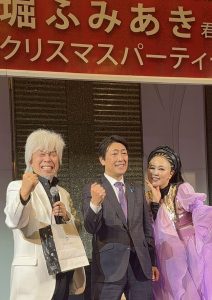 最後に、12/22に2年ぶりに開催した「新堀ふみあき君を囲むクリスマスパーティー」についてご報告ついでに、思っていることをつらつらと書こうと思います。新堀家にとってクリスマスパーティーは、政治資金パーティーであると同時に歴史ある行事です。父・豊彦の時代から叔父・典彦を経由して今に至るまで、新堀を支えてくださった応援団の地元企業の皆様が中心となって50年以上続いています。コロナ禍で3年ほど開催を自粛していましたが、令和5年から復活していました。ところが令和6年、「キックバック」「裏金議員」など国会議員による政治と金の問題が報道され、政治資金パーティーそのものが「悪」とされる風潮が蔓延し、開催を断念せざるを得ませんでした。我々地方議員の資金パーティーは、問題視された派閥の資金パーティーとは本質的に違います。そもそも自分自身が地道に企業に足を運んで、チケット購入を依頼するので「キックバック」など存在しません。もちろん政治資金規正法に則り、収支はしっかり記載して選管に提出します。このように何も後ろめたい事はありませんが、当時の状況を鑑み開催を断念するに至りました。しかし、収入源の少ない地方議員にとって資金パーティーは実は重要なんです。こうした資金パーティーの収益や、自分が支部長を務める選挙区支部に対して個人献金・企業献金があるからこそ、事務所の家賃や事務員の給与を支払うことができます。ひいては4年に1度の統一地方選でのポスター・パンフレットの制作費等にも活用することが可能です。選挙を1年半後に控えた私自身、背に腹は代えられず?今年はクリスマスパーティーを復活させることといたしました。今回はものまね芸人のセニョール玉置さんとSHINOBUさんをゲストに招いて、大いに盛り上がりました。出席された皆様から「楽しかったよ!」「来年もやってね」と声をかけていただき、開催して良かった…と思っています。チケットの収入以外にも、支援者の皆様と近い距離で触れ合える貴重な機会だと改めて認識することができました。お客様もスタッフも、みんな本当に良い笑顔でした。来年もやります!