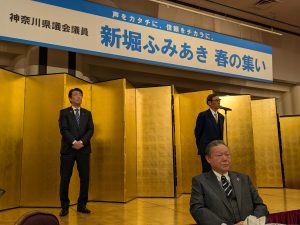 最後に、我が後援会の恒例行事についてのご報告で3月のブログを閉めたいと思います。昨年に続き「新春の集い」が諸事情により「春の集い」となって開催した新堀後援会のメインイベントが、3月末の27日に行われました。年度末の忙しい中、横浜DeNAベイスターズの開幕戦と同時刻にスタートという大ヒンシュクのタイミングにもかかわらず、350名を越える方々のご出席をいただき感謝の言葉もありません。今回から企画もリニューアルして、クイズ大会や神奈川県議会見学ツアーの募集など新たな試みも実施しましたが、参加した皆さんから「楽しかった!」とお言葉を頂戴しました。MCの栗原治久さん、スタッフのみんな、そして今年もご参加いただいた多くの支援者の皆様方に、心から御礼申し上げます。ありがとうございました!